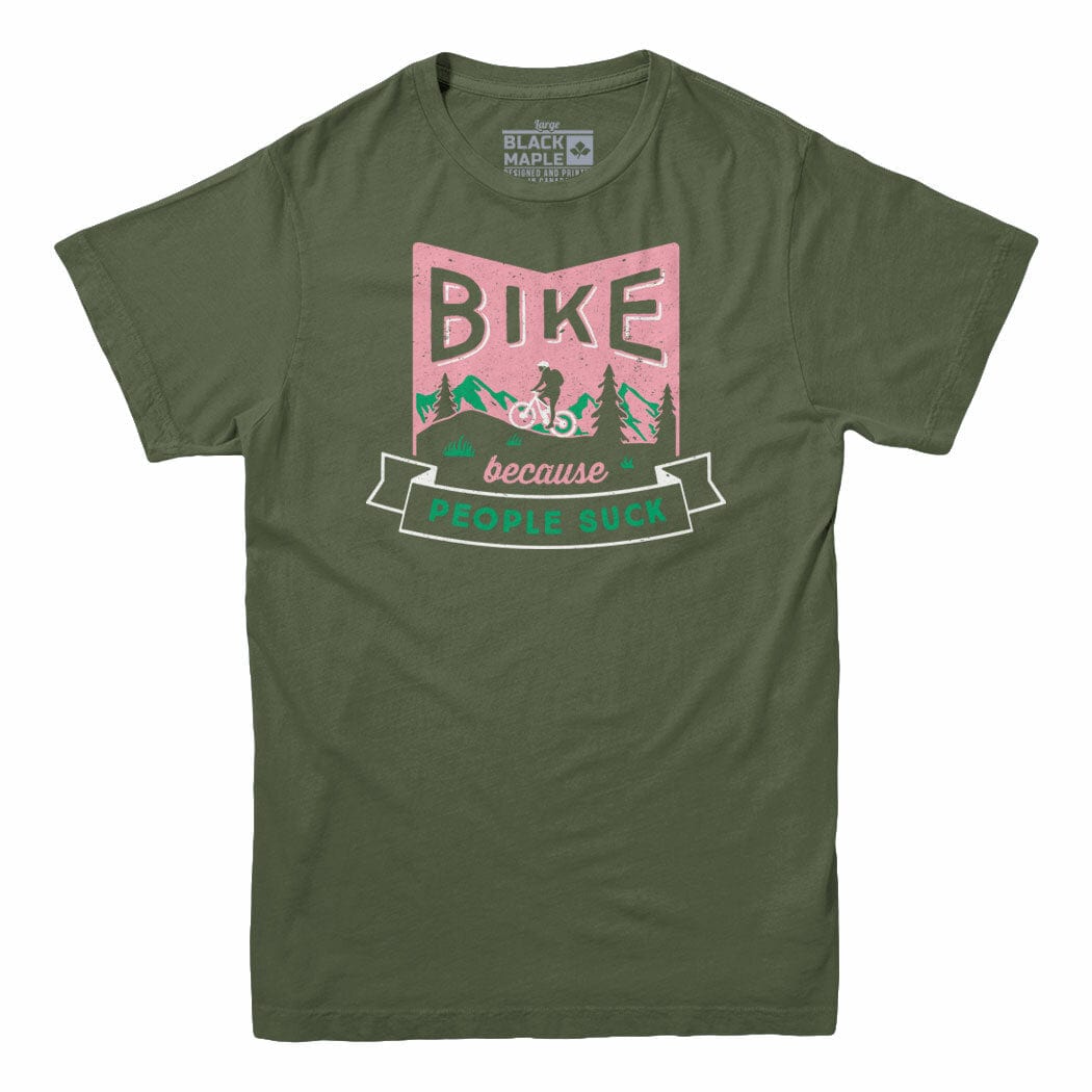 Bike Because People Suck T-shirt - Mens T-shirt / Military Green / S is backordered and will ship as soon as it is back in stock.