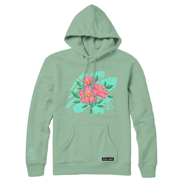 Set on cozy hoodies and classic crewneck silhouettes, the artwork turns provincial pride into hoodies for everyday wear. MC Baldassari’s multidisciplinary approach bridges intimate illustration and large-scale murals, creating botanical works that stand out against urban landscapes — now translated into comfortable Canadian apparel with striking character.