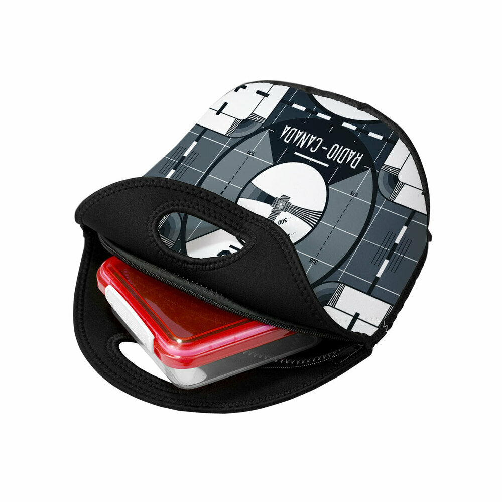 Carry around a piece of Canadian television history with this CBC TV Test Pattern Lunch Bag perfect for work, school, beach, concerts, camping, anywhere you may need a snack and some drinks. This neoprene lunch tote is 11.5" x 11.5" x 6", insulated to keep those tasty treats nice and fresh, and a strong zipper enclosure. Even better is it is stain resistant and machine washable because spills happen.