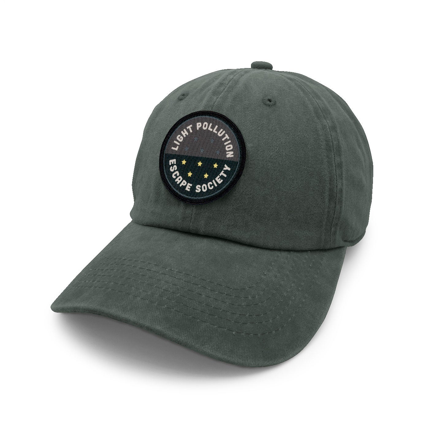 Escape the city lights with our pigment dyed dad cap featuring the "Light Pollution Escape Society" patch. Embrace the night sky and adventure in comfort and style. Crafted for stargazing vibes.