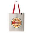 Maggies Feed Store Distressed Logo Canvas Tote Bag - Natural with Red is backordered and will ship as soon as it is back in stock.