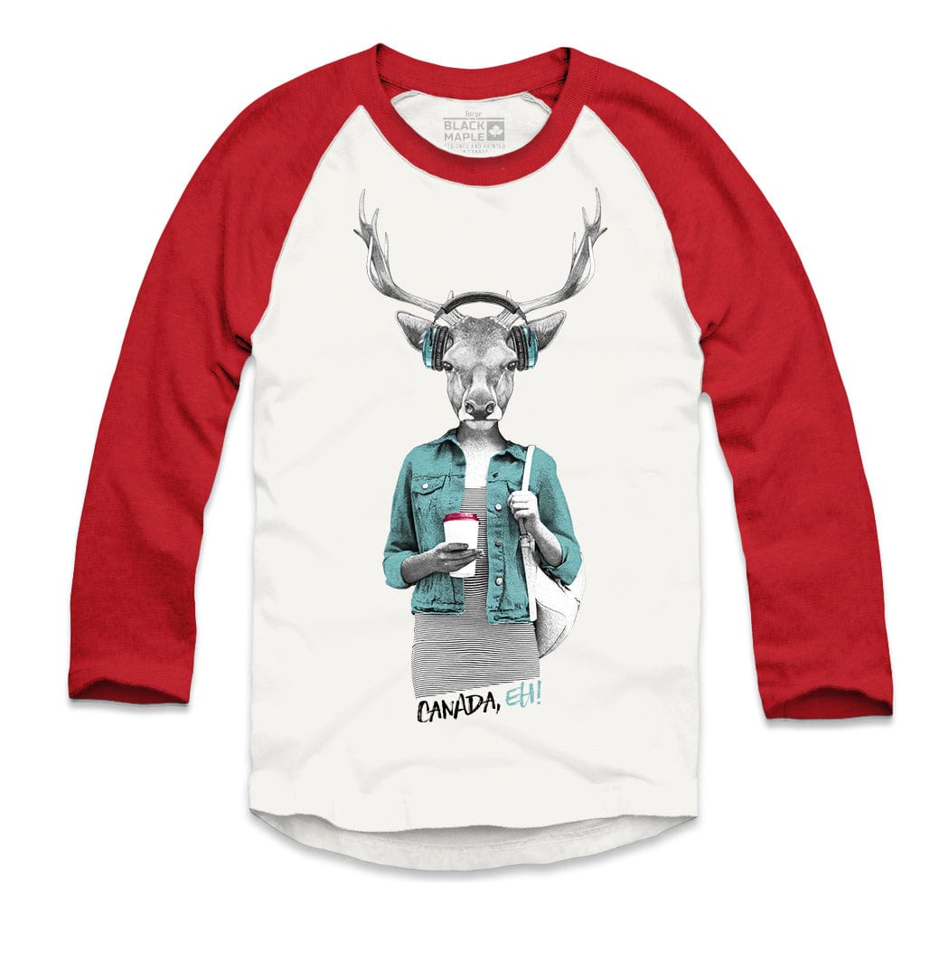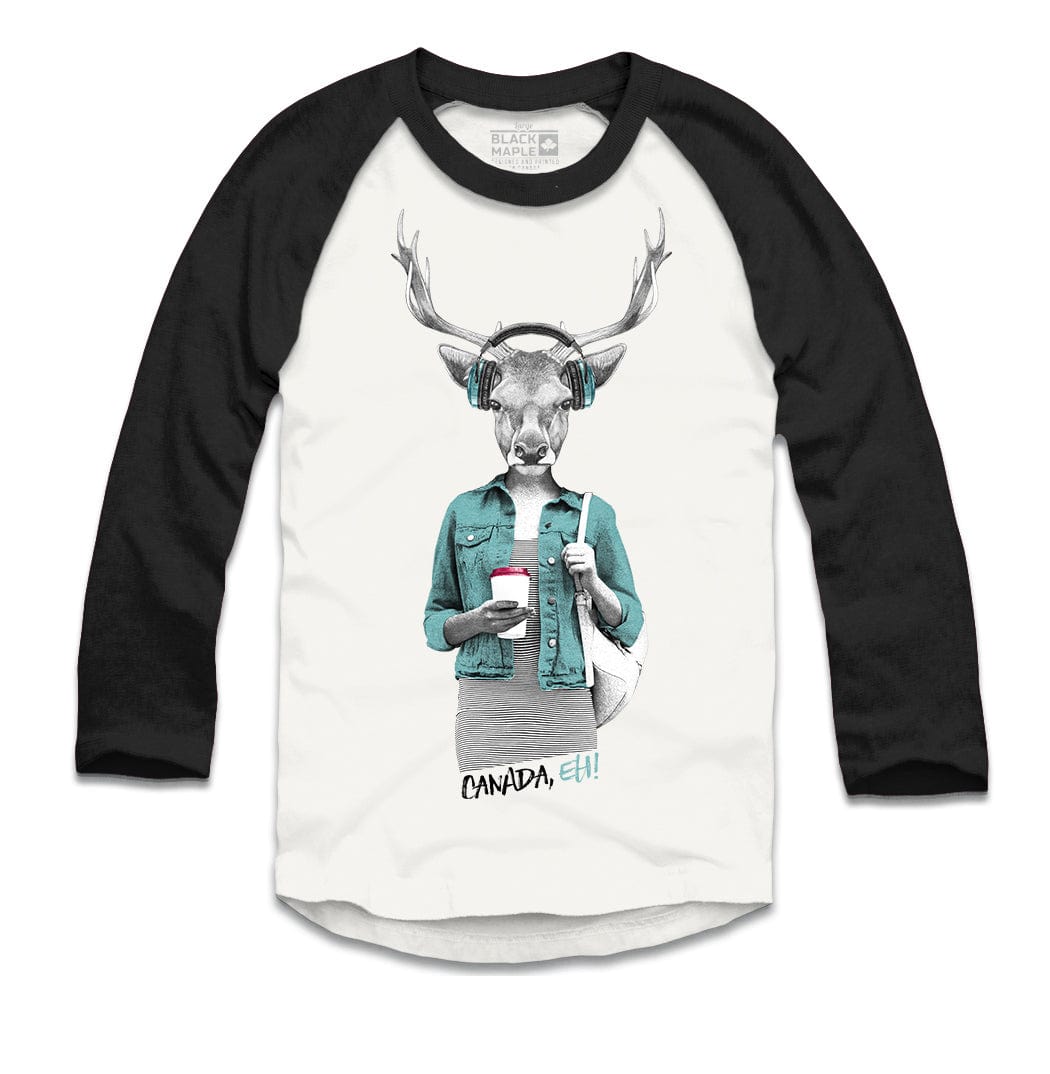 Hipster Deer with Latte White with Black Raglan