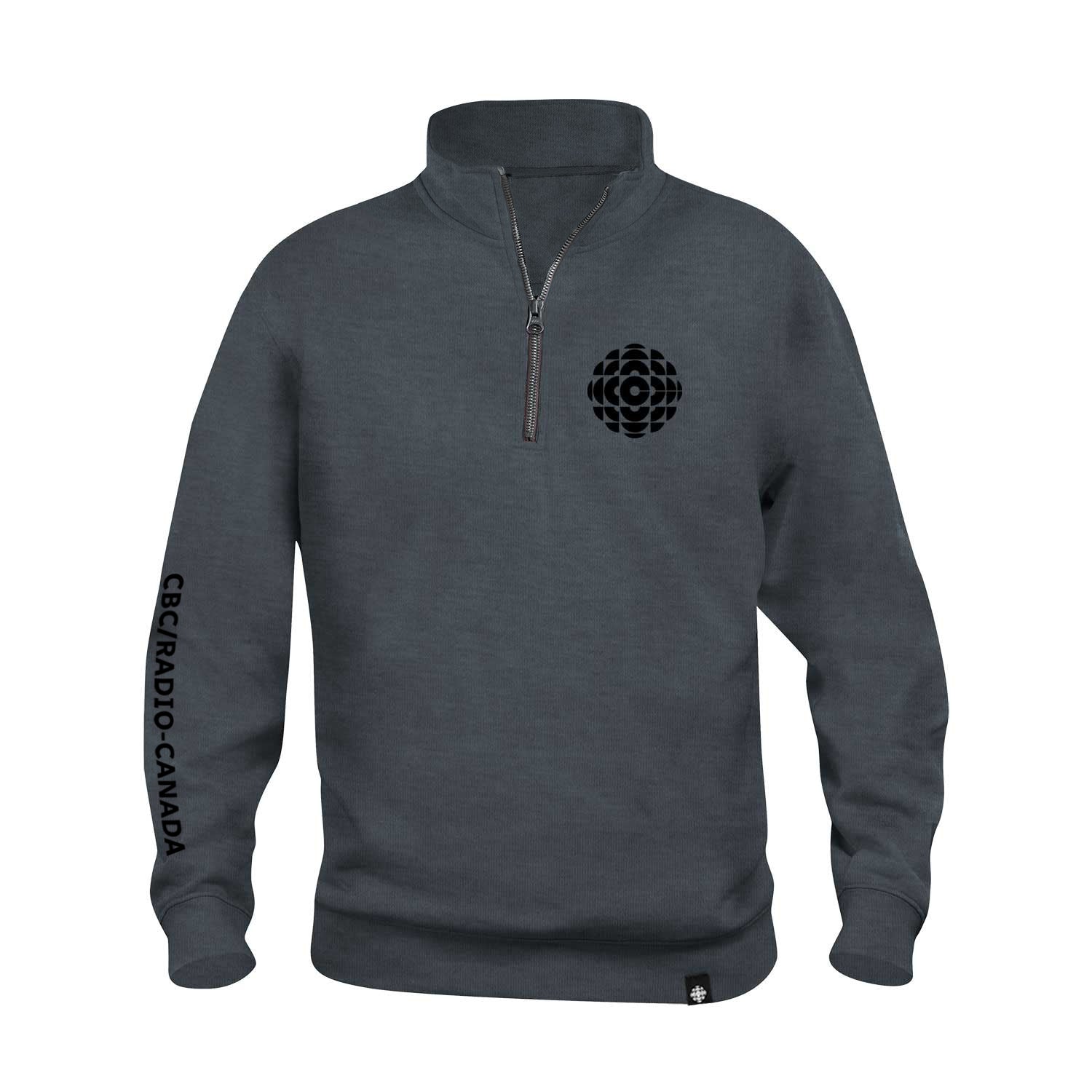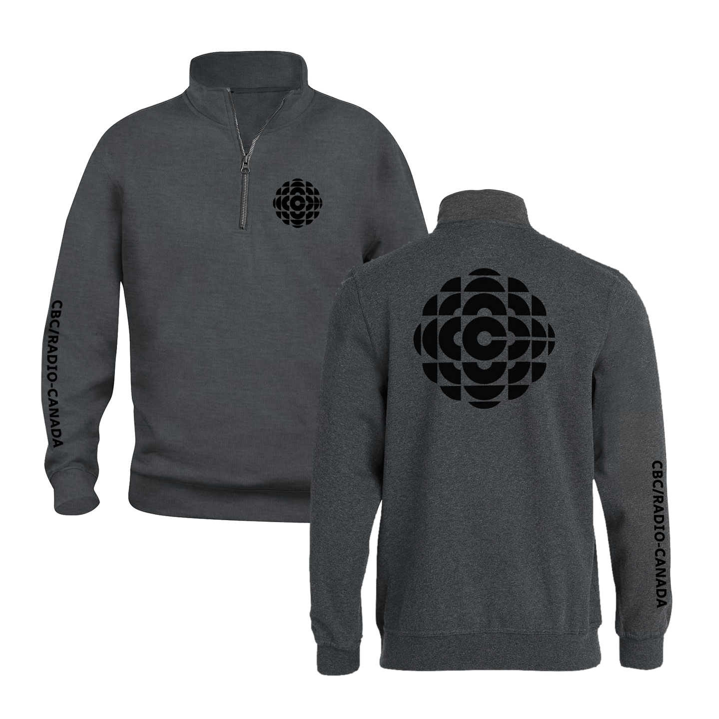 Elevate your style with the "CBC 1986 Black Logo Quarter Zip Sweatshirt." Featuring a sleek small logo on the left chest, a "CBC/RADIO-CANADA" sleeve print and a large emblem on the back, this quarter zip sweatshirt is perfect for cozy vibes and vintage charm. Embrace your love for classic television and add a touch of retro to your wardrobe. Whether you're a fan of the past or simply appreciate iconic designs, this sweatshirt is a statement piece to warm both your body and heart.