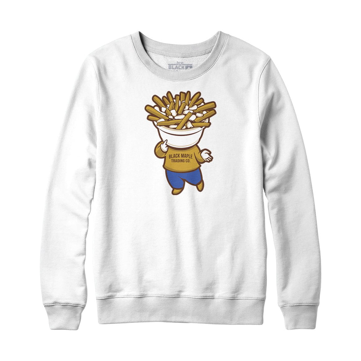 Are you craving something truly poutinesque? Look no further than the Poutine Head Crewneck Sweatshirt! Show off your love of all things poutine with this comfy, stylish crewneck featuring a cute character with a poutine head. This is an essential wardrobe staple for any true poutine lover! Whether you like classic cheese curds and gravy, bacon and cheese, or veggie loaded -no matter how you top it- when you put on this sweatshirt, you're letting everyone know that your heart belongs to the iconic Canadian dish. Show off your unique style and join in on the wacky fun with the Poutine Head Crewneck Sweatshirt!