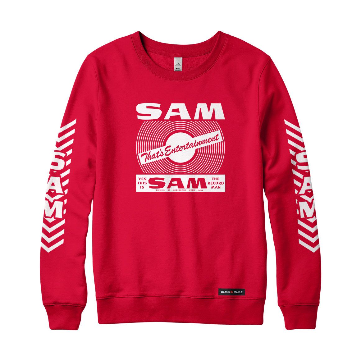 That's Entertainment Sam the Record Man Sweatshirt or Hoodie - Hoodie / Red / S is backordered and will ship as soon as it is back in stock.