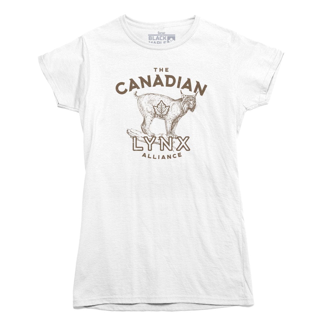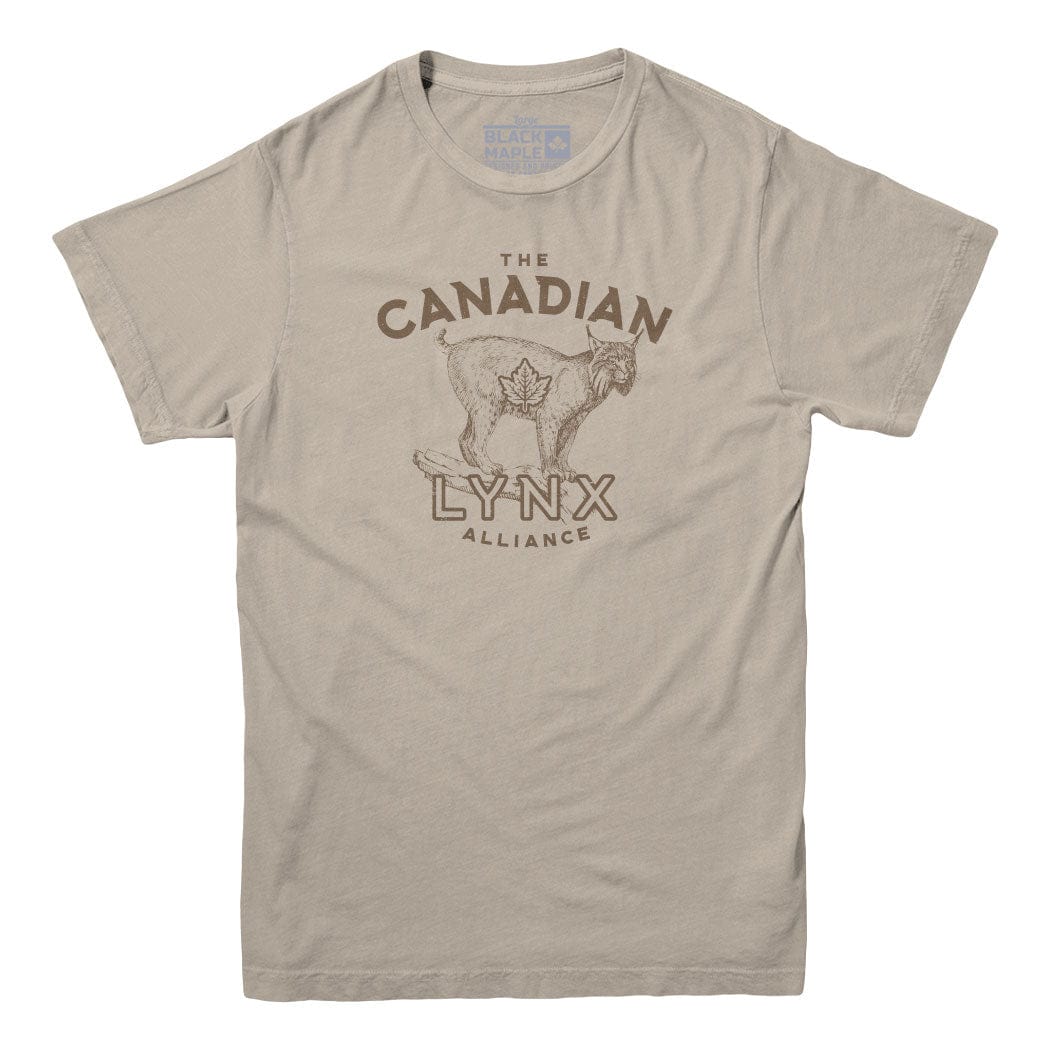 Introducing the Canadian Lynx Alliance T-shirt! This stylish and retro shirt features a bold lynx graphic that is sure to turn heads. It's perfect for nature lovers and those who appreciate unique and eye-catching designs. The shirt is made of high-quality materials and is extremely comfortable to wear, making it perfect for any occasion. Whether you're hitting the trails or just running errands, this shirt is sure to become your new go-to. Order yours today and show your support for the Canadian lynx!