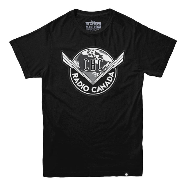 This monochrome version of the CBC's very first logo makes for a great vintage looking t-shirt. Featuring a large 1940s thunderbolt logo these CBC T-shirts are a great gift for any fan of the Canadian Broadcasting Corporation.