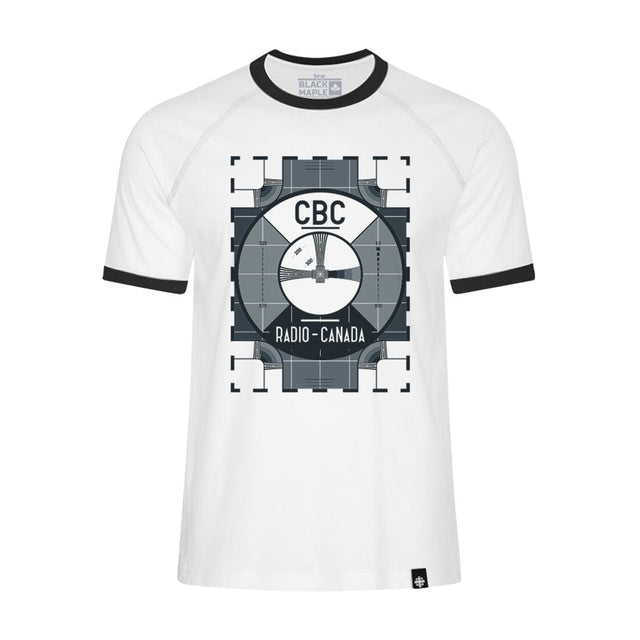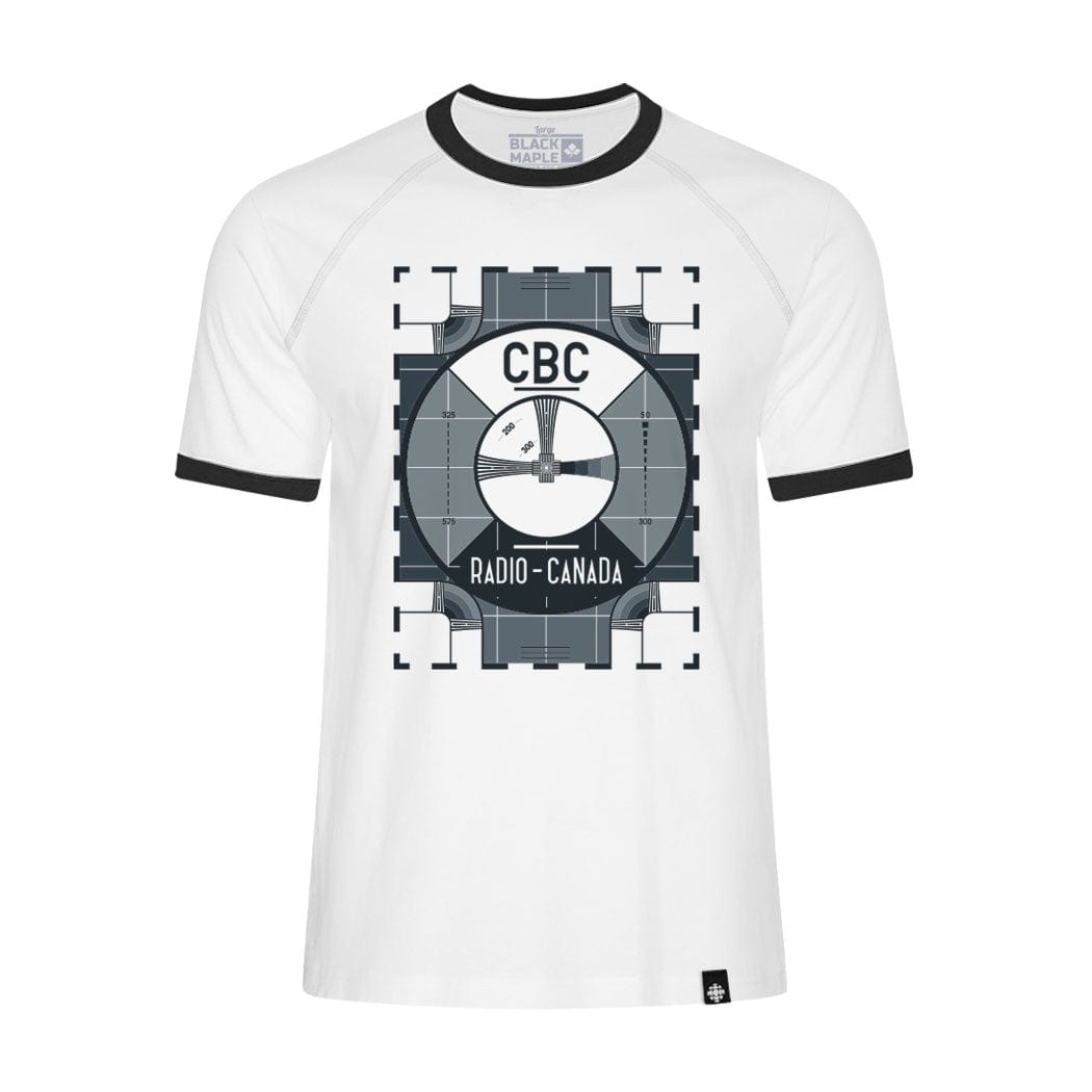 Looking for a shirt that's both stylish and nostalgic? Look no further than the CBC Test Pattern Ringer T-shirt! This comfortable tee features the classic retro CBC test pattern graphic on the front. The shirt is perfect for showing your love for classic Canadian television, and is sure to get you compliments from other old-school TV fans. So throw on the CBC Test Pattern Ringer T-shirt and enjoy a blast from the past!