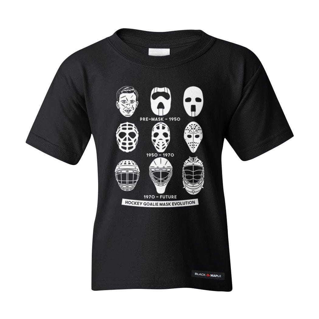 Hockey Goalie Mask Evolution Kids T-shirt - Kids T-shirt / Black / Youth XS is backordered and will ship as soon as it is back in stock.