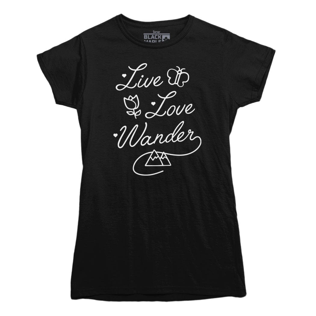 All those who wander are not lost. Wander out to where there is no wifi in this Live Love Wander Ladies Tshirt.