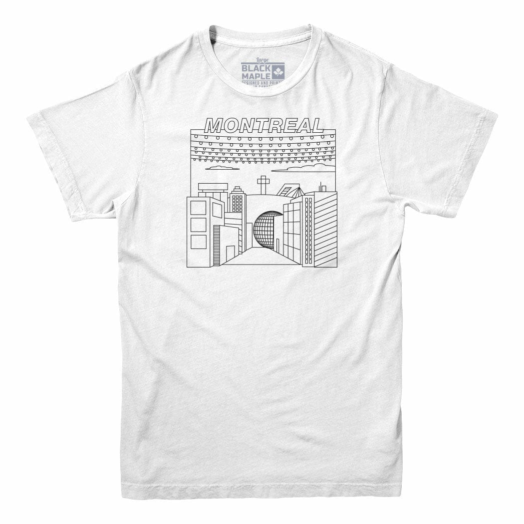 Celebrate Montreal wearing this great graphic Montreal Perspective Tshirt. This art inspired Montreal t-shirt features most of the iconic architectural elements that make the city unique.
