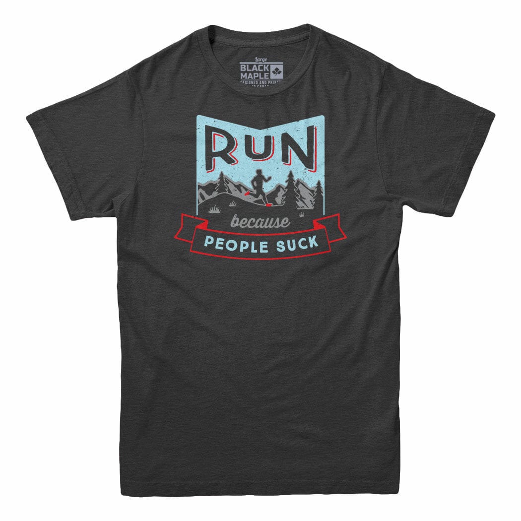 Run Because People Suck T-shirt - Mens T-shirt / Charcoal Heather / S is backordered and will ship as soon as it is back in stock.
