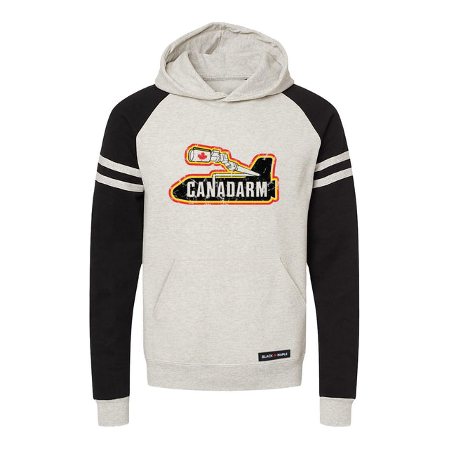 Canadarm Logo Varsity Hooded Sweatshirt - Varsity Hooded Sweatshirt / Oatmeal with Black / S is backordered and will ship as soon as it is back in stock.