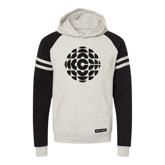 Own a piece of broadcasting history with our CBC 1974 Black Logo Varsity Hooded Sweatshirt. This iconic design from Canada's national broadcaster brings retro cool to our classic unisex hoodie. The bold black logo pops against the oatmeal heather body, complemented by contrast raglan sleeves and varsity stripes. Made with sustainably-sourced USA cotton in a comfortable 50/50 blend, it's a perfect tribute to Canadian media heritage