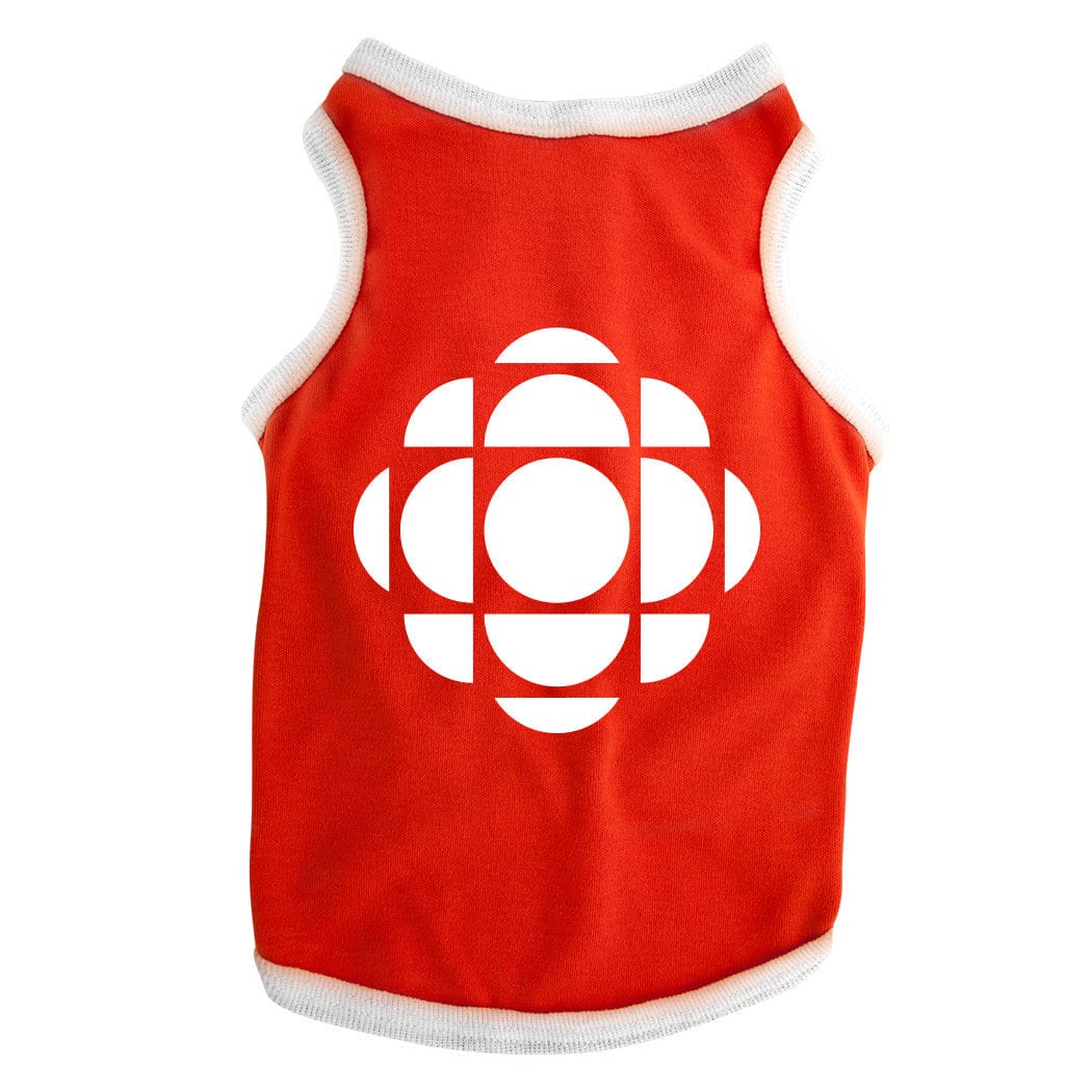 Now even your dog can show his support for Canada's favorite broadcaster in this CBC White Gem logo dog apparel.