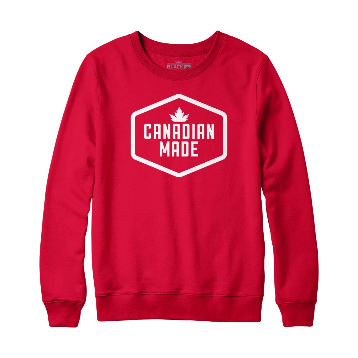 Show of your Canadian roots proudly with the great Canadian Made logo sweatshirt or hoodie. The minimalist yet bold Canadian Made logo will make everyone know your a proud Canuck wherever you go. These hoodies are made of a midweight Cotton / Poly blend fabric that is super soft a cozy to keep you warm on those chilly nights.