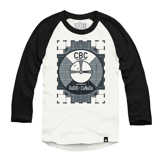 Our CBC Test Pattern Raglan Baseball Shirt is the perfect way to show your support for your favourite Canadian broadcaster! This shirt features the iconic CBC test pattern design on a classic baseball raglan shirt. It's made from a soft and comfortable cotton fabric, and has a vintage feel that makes it perfect for any CBC fan.