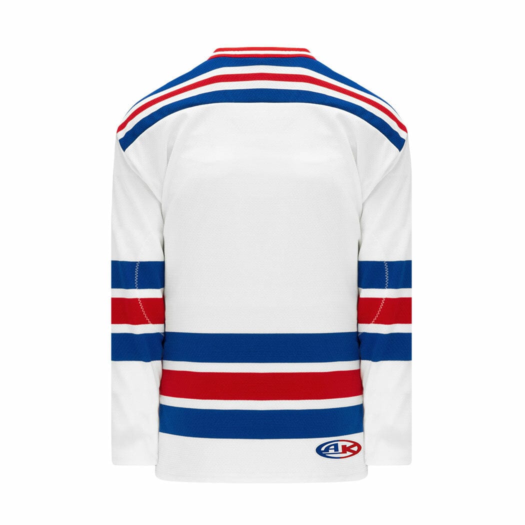 This quality jersey is an AK knit with a crossover V-neck, double elbows and double shoulders. Perfect for any Hockey Fan who loves New York.