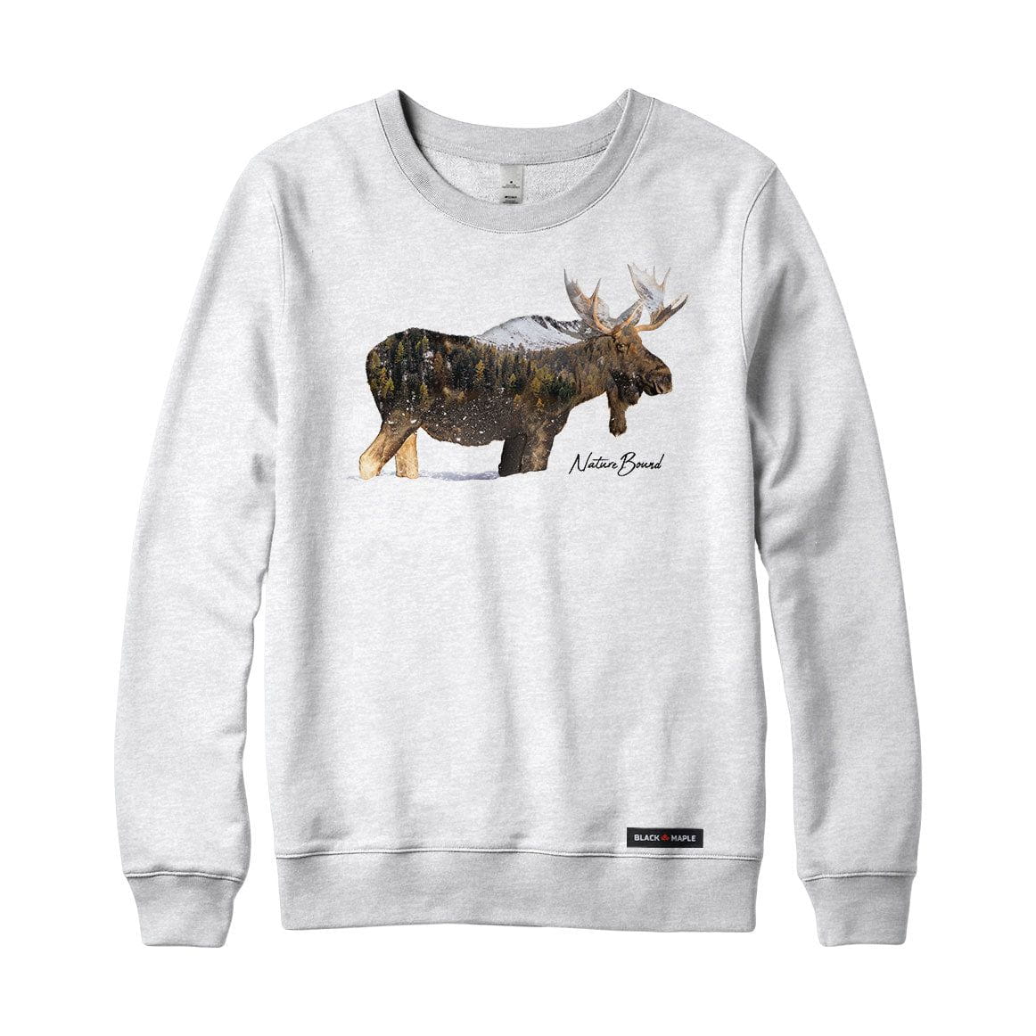 Nature Bound Moose Sweatshirt or Hoodie - Crewneck Sweatshirt / White / S is backordered and will ship as soon as it is back in stock.