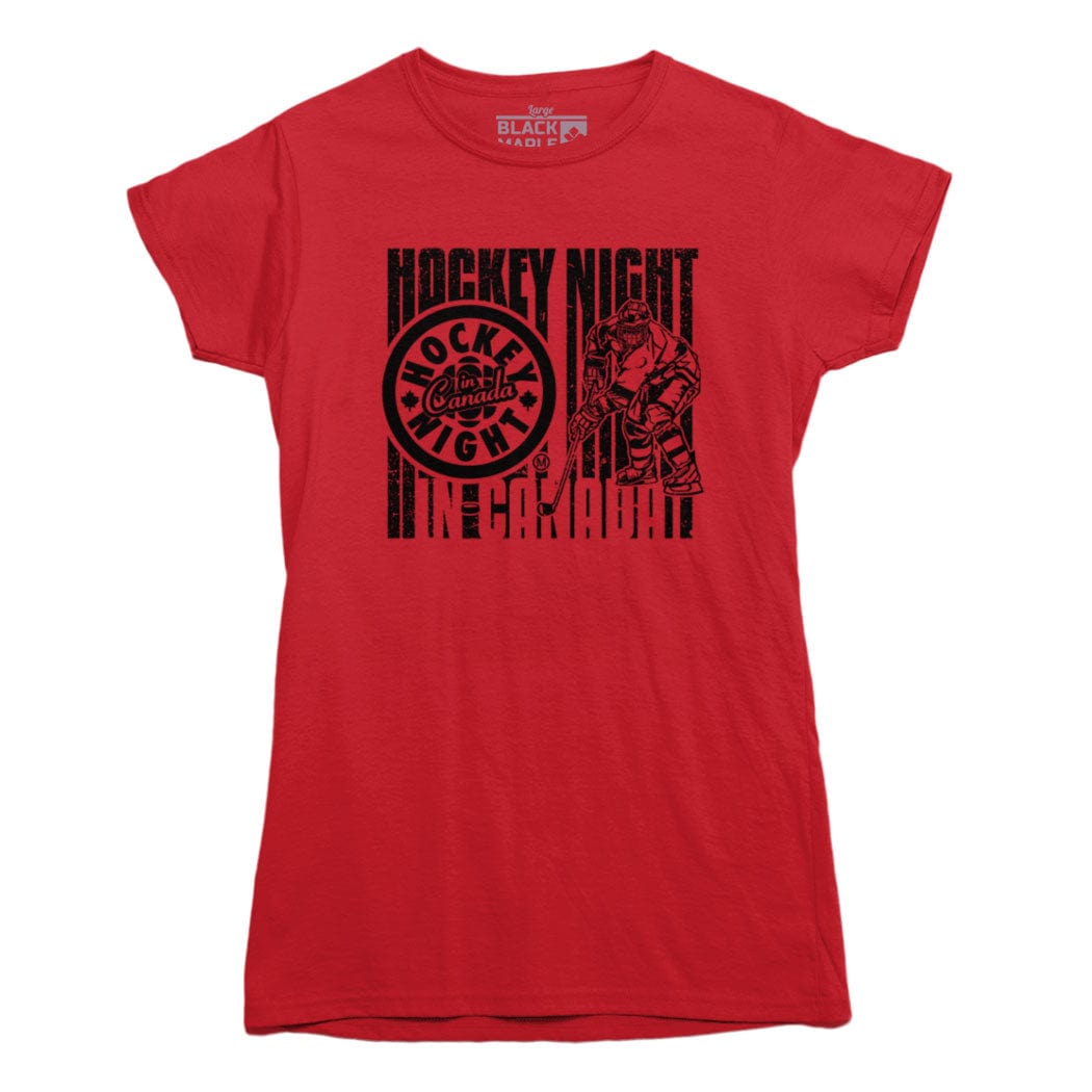 Hockey Night in Canada is an iconic Canadian brand, and now you can show your support for your favorite team with this stylish and comfortable Hockey Night in Canada Ice Hockey Player T-shirt. This shirt is perfect for showing your passion for the game, and it also makes a great gift for any hockey fan in your life. The shirt features a bold and graphic design of a hockey player in action, with the Hockey Night in Canada logo prominently featured. It's made from a soft and breathable cotton or cotton blend fabric, and it has a relaxed and comfortable fit that makes it perfect for casual wear. Whether you're cheering on your team from the stands or just hanging out with friends, this shirt is sure to get you noticed.