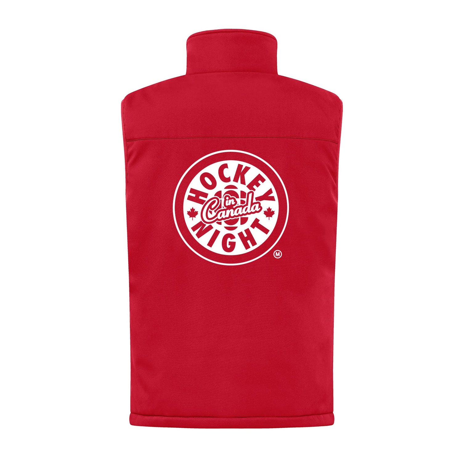 HNIC White Logo Insulated Soft Shell Vest - Men's Insulated Soft Shell Vest / Red / S is backordered and will ship as soon as it is back in stock.