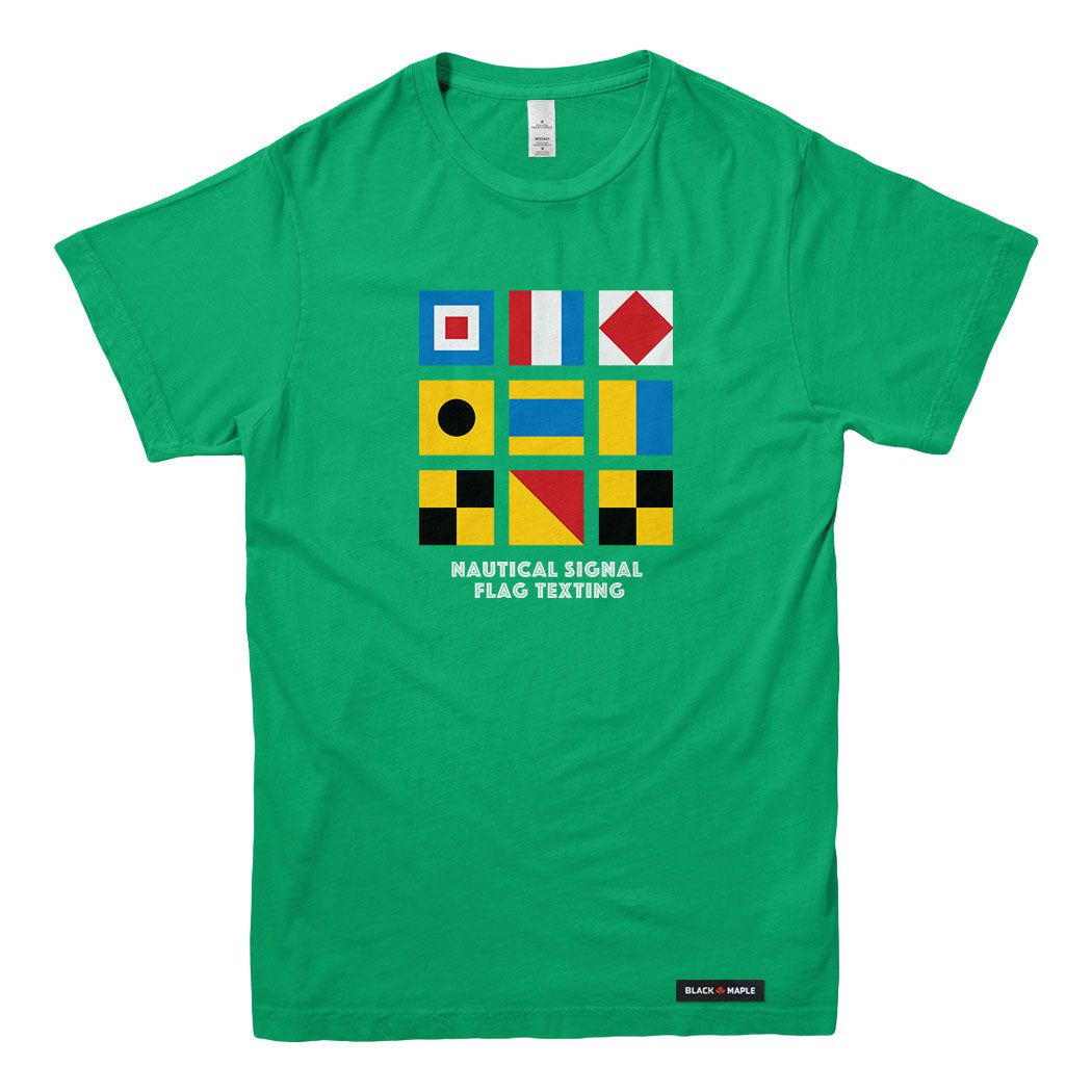 Nautical Signal Flag Texting T-shirt - Mens T-shirt / Green / S is backordered and will ship as soon as it is back in stock.
