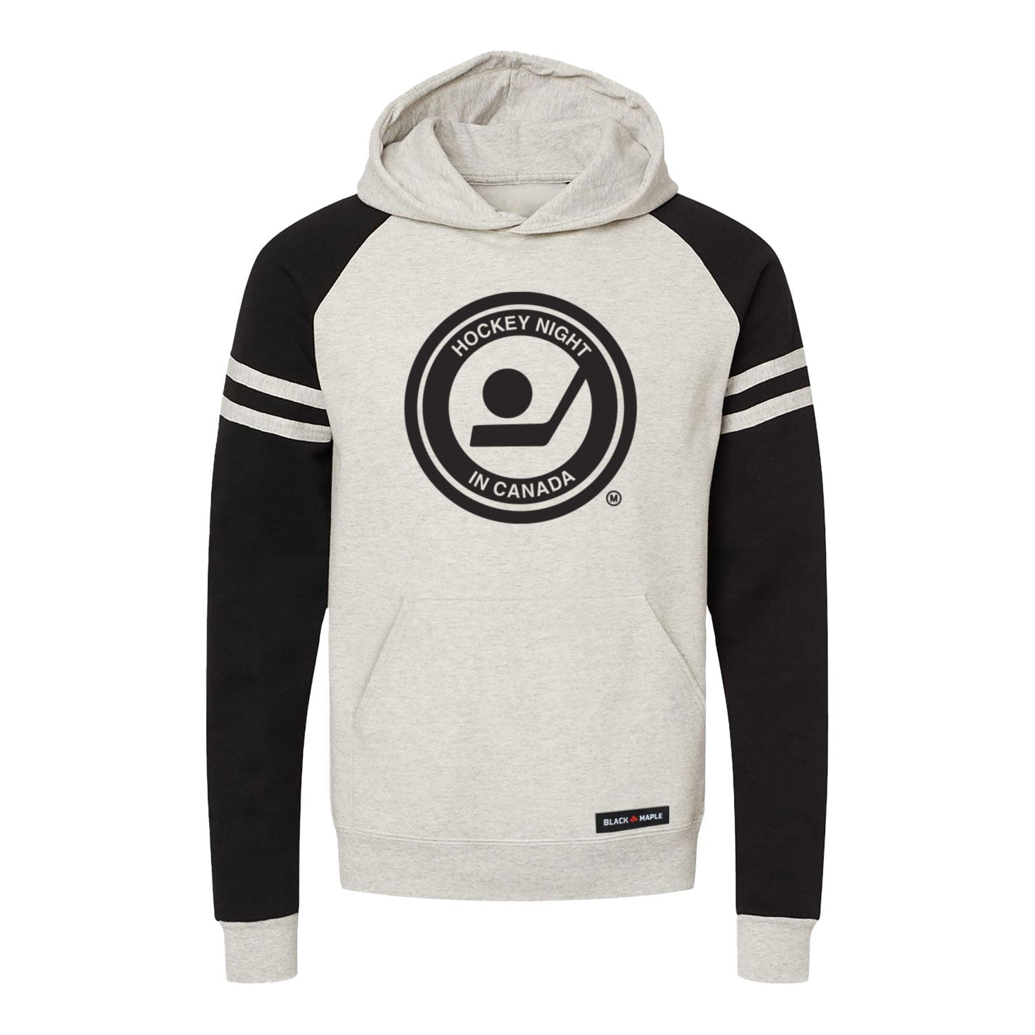 Retro Hockey Night in Canada Varsity Hooded Sweatshirt - Varsity Hooded Sweatshirt / Oatmeal with Black / S is backordered and will ship as soon as it is back in stock.