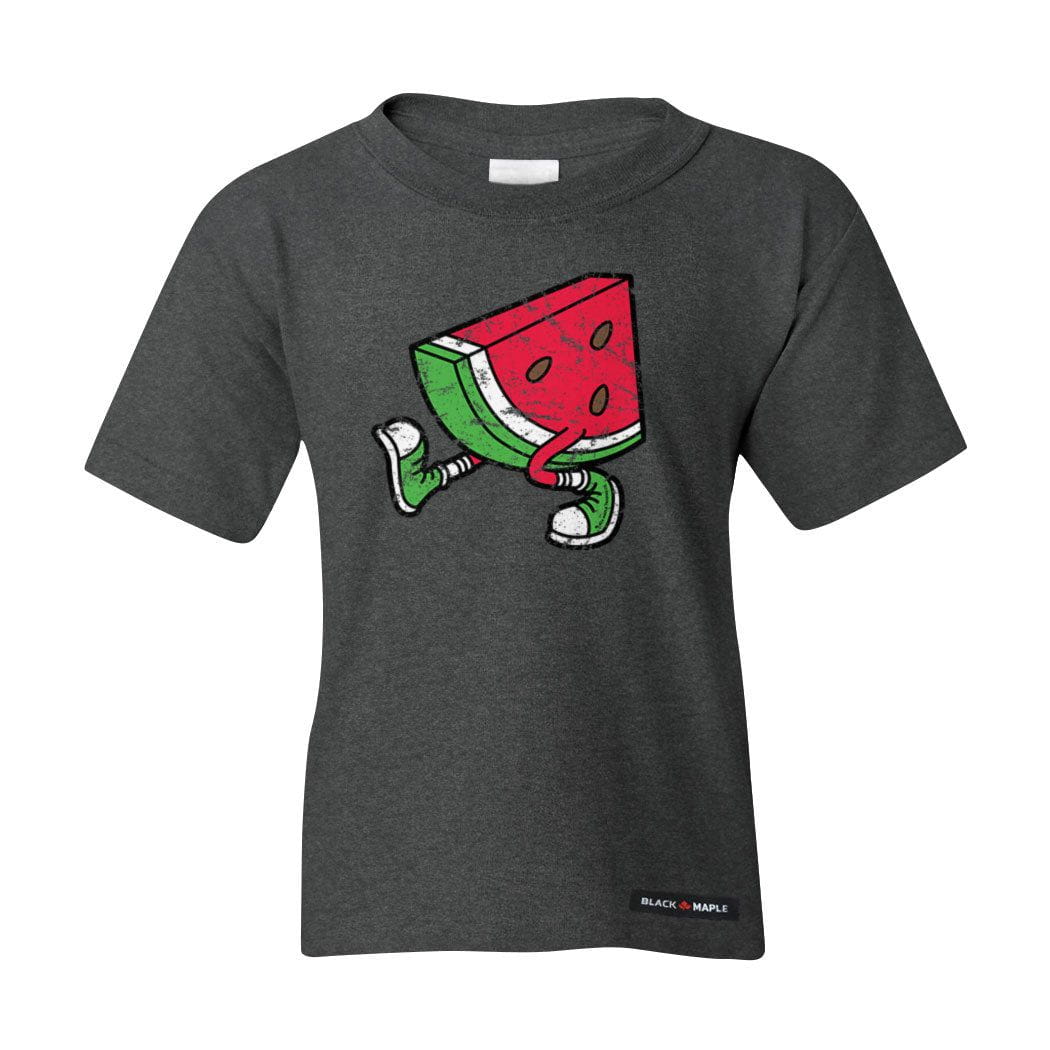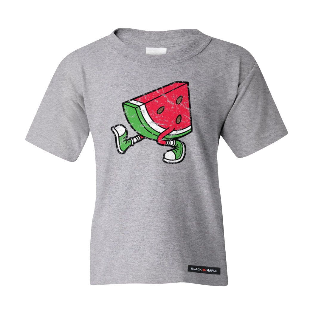 Featuring fun and bold graphics of a watermelon slice with two legs strutting away, this bright and eye-catching t-shirt is sure to make your little one giggle. Let them show how much they love their favourite summer fruit with this stylish and comfortable tee, perfect for any casual occasion.
