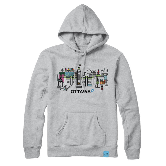 Celebrate your love for Ottawa and stay warm with this unique hoodie showcasing many of Canada's iconic imagery.