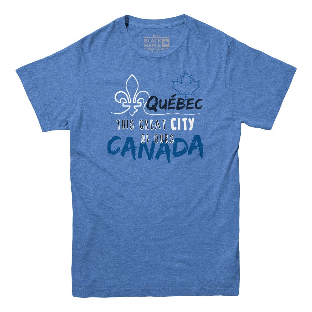 Quebec City: This Great City T-shirt - Mens T-shirt / Royal Heather / S is backordered and will ship as soon as it is back in stock.