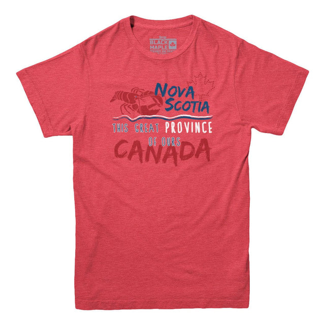 Nova Scotia: This Great Province of Ours T-shirt - Mens T-shirt / Red Heather / S is backordered and will ship as soon as it is back in stock.