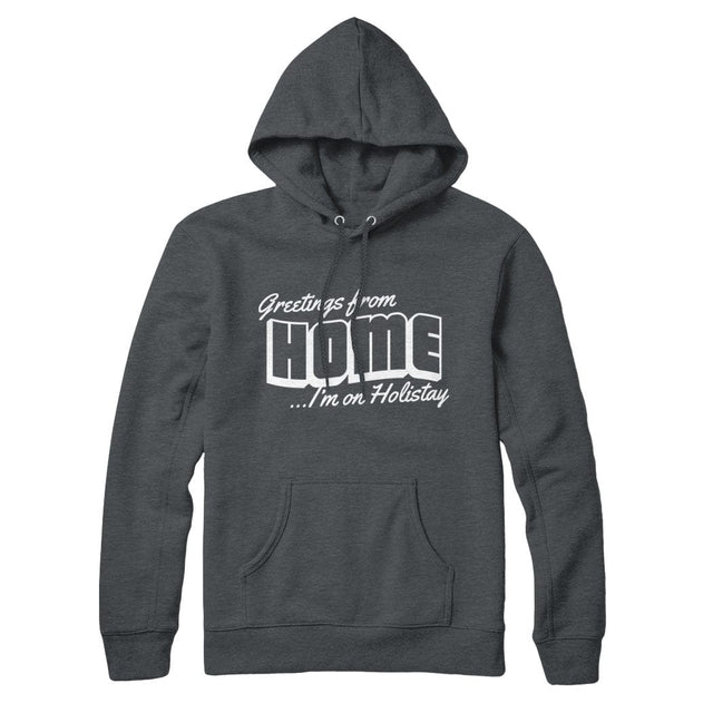 While vacationing abroad has its perks- culture, sights, foods; there is something to say about a great Staycation. This amazing Greetings from- HOME is the perfect souvenir for your most restfull holiday- the one where you slept and did nothing in the comfort of your things for a week. Maybe buy it before leaving- then, your Holistay can be extra cozy while wearing your new Hoody!