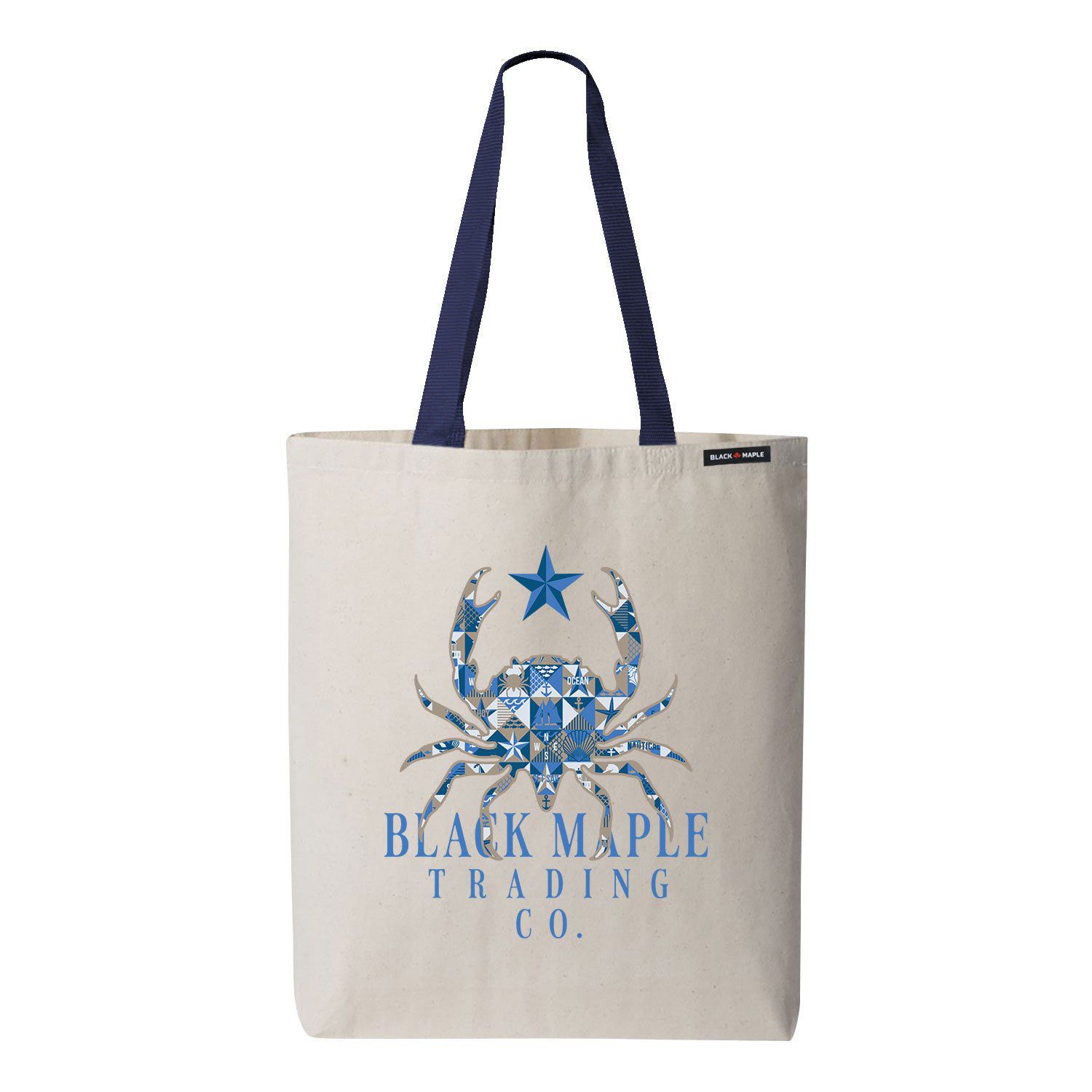 Crab Patchwork Tote Bag - Tote Bag / Natural with Navy / One Size est en rupture de stock et sera expédié dès qu’il sera de retour en stock.
