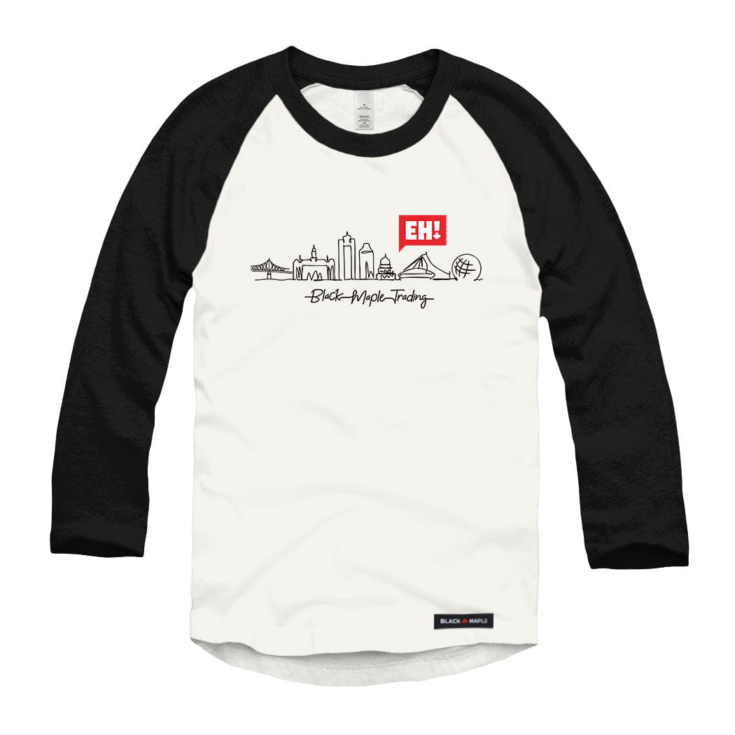 Urban character meets relaxed style in this raglan baseball shirt featuring the EH! Montréal Skyline design. A classic fit paired with a culturally rich city graphic.