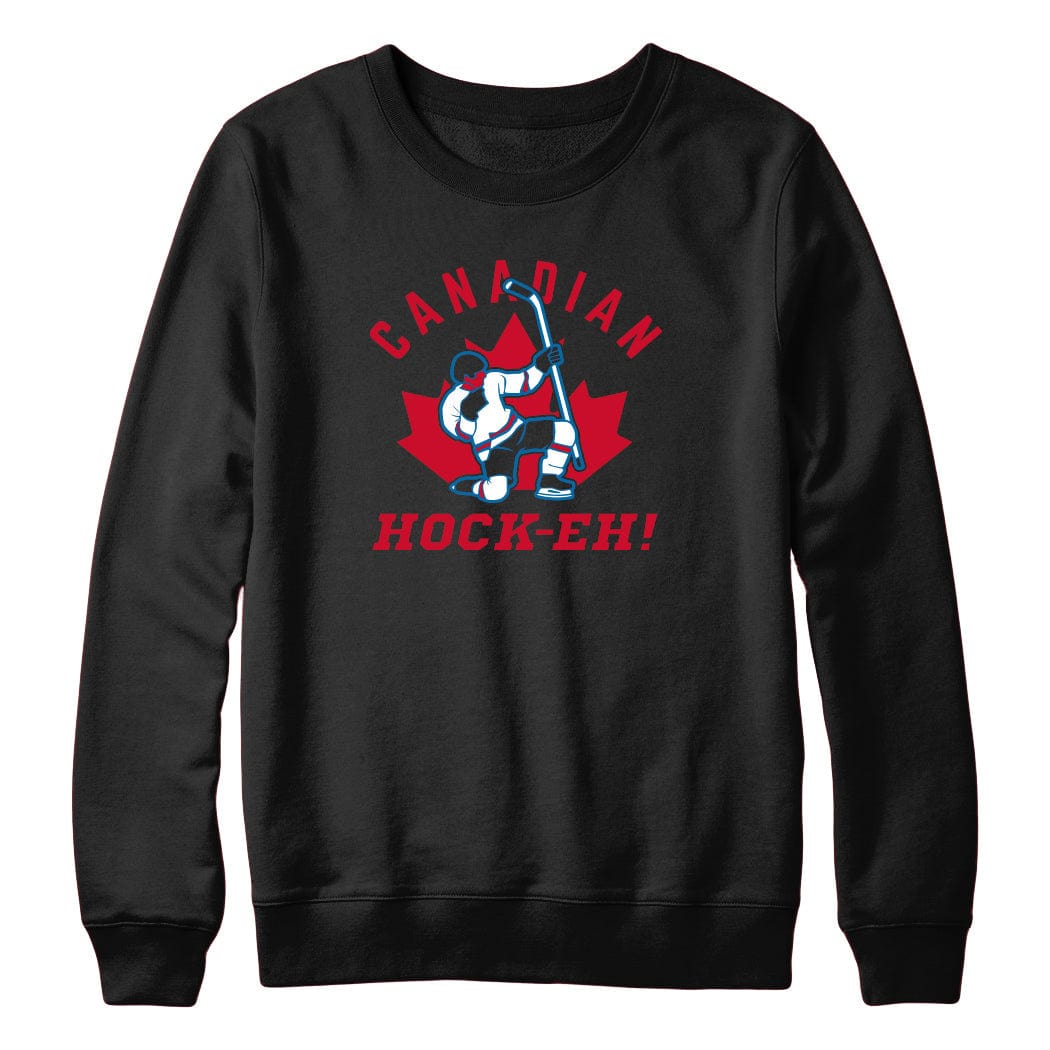 Show your love for the game with this bold sweatshirt featuring a hockey player mid-celly and the phrase 'Canadian Hockey-Eh!'—a true nod to Canada’s favourite sport and its passionate fans.