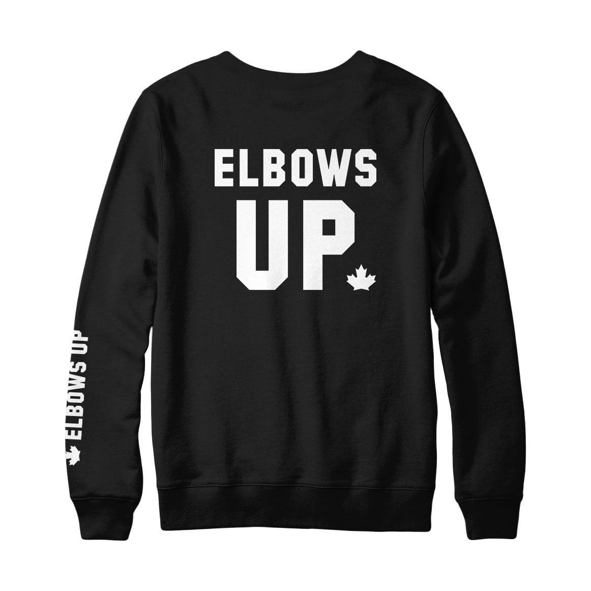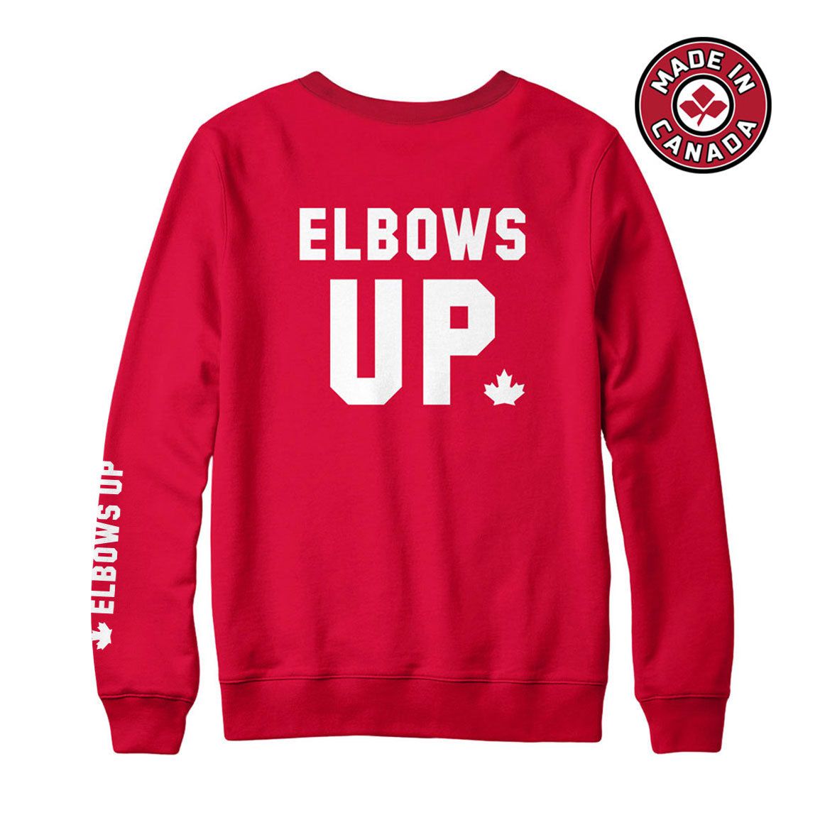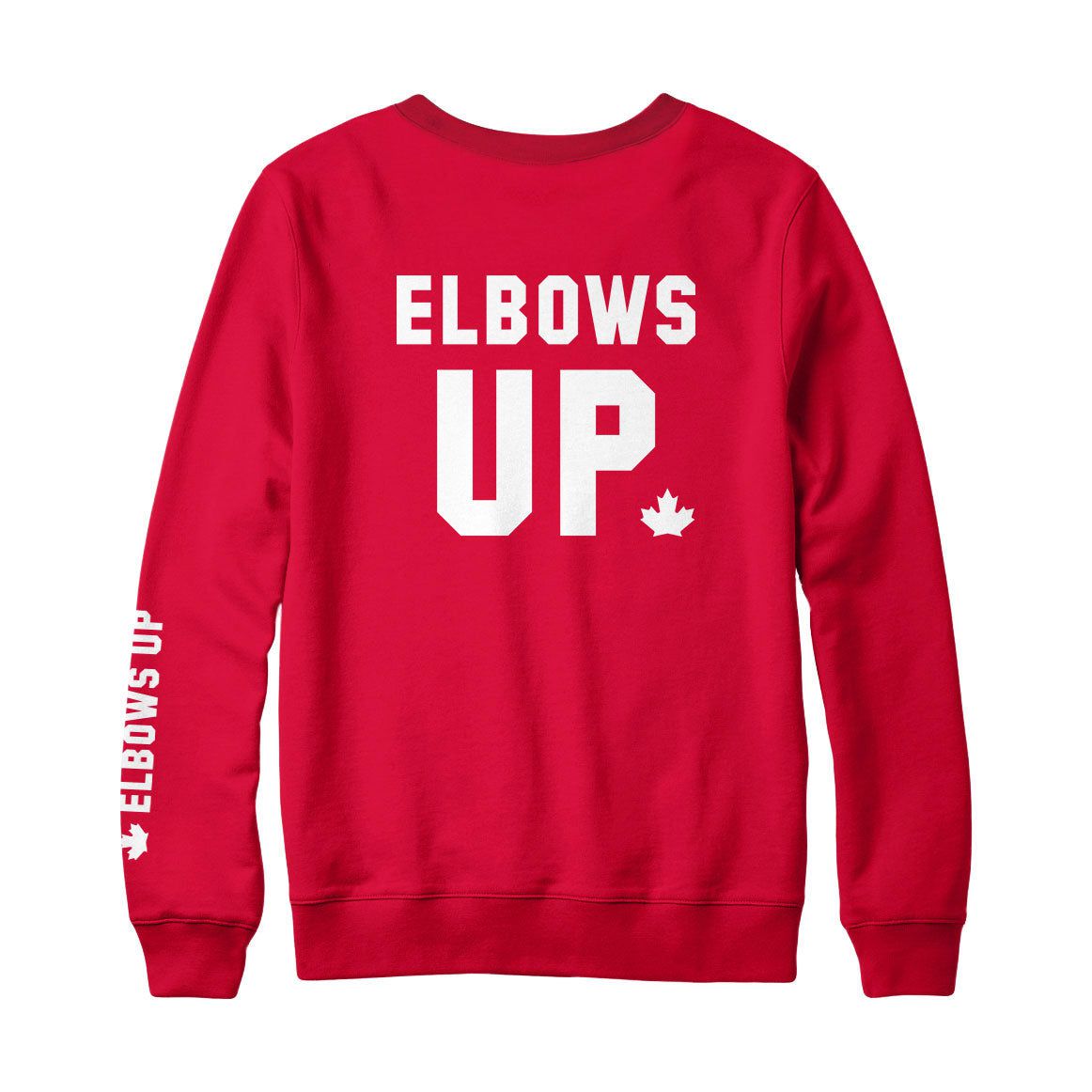 Elbows Up Canada Chest, Back and Sleeve printed Sweatshirts!