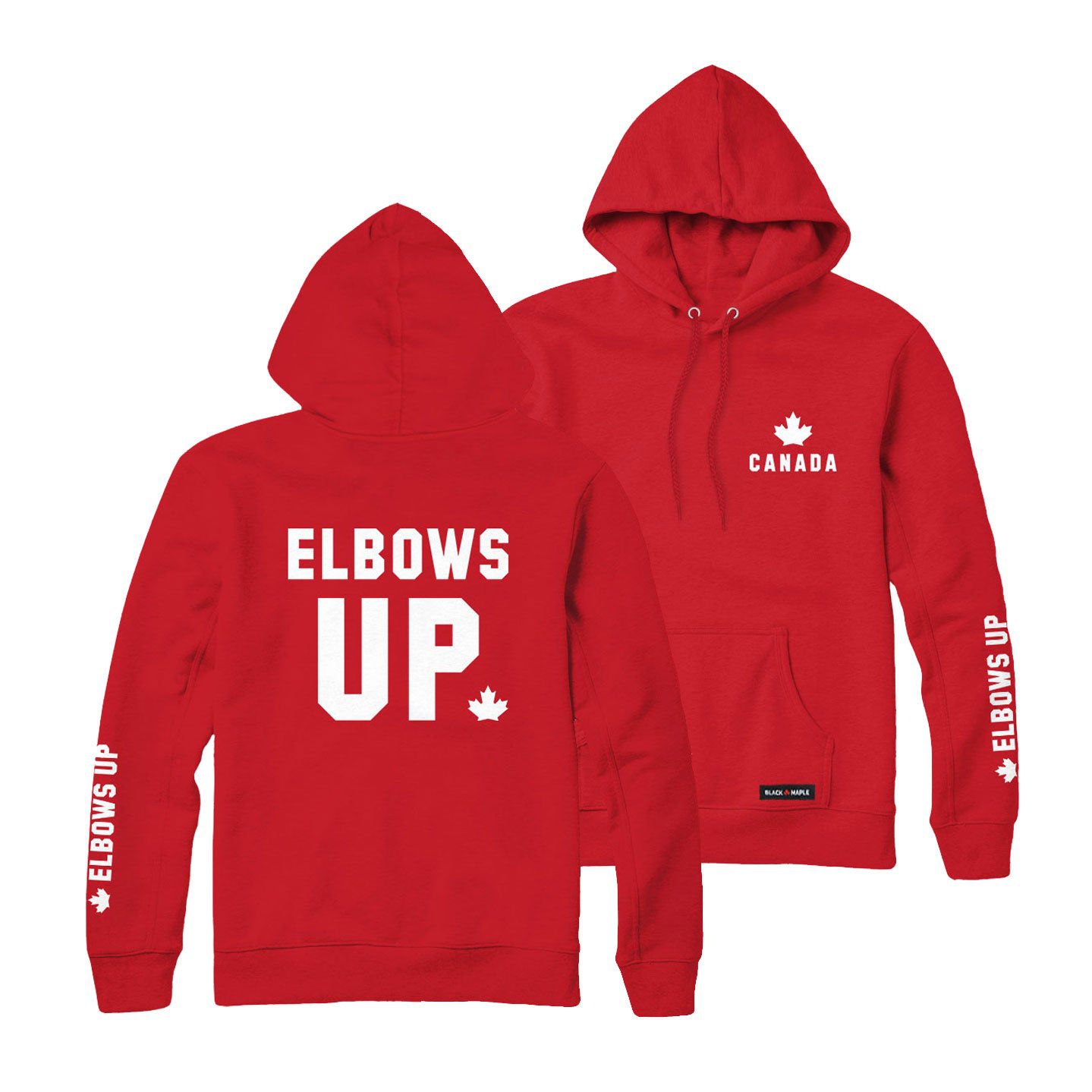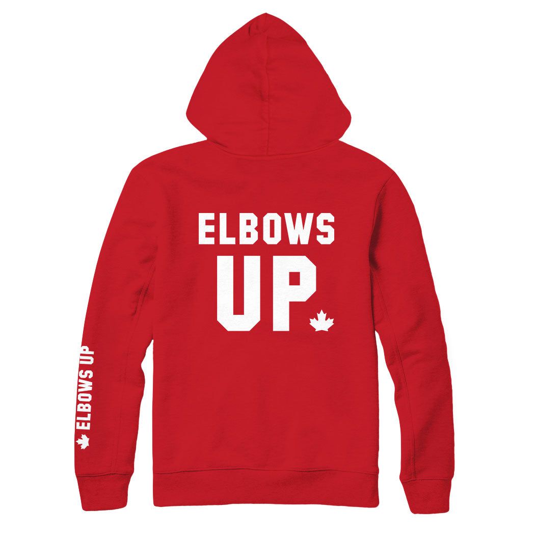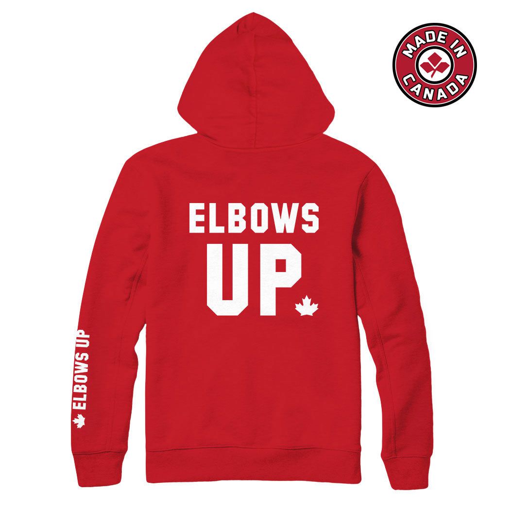 Elbows Up Canada Chest, Back and Sleeve printed Sweatshirts!