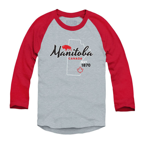- Manitoba Est 1870 Map Raglan Baseball Shirt $31.00 USDPrix unitaire /Indisponible
