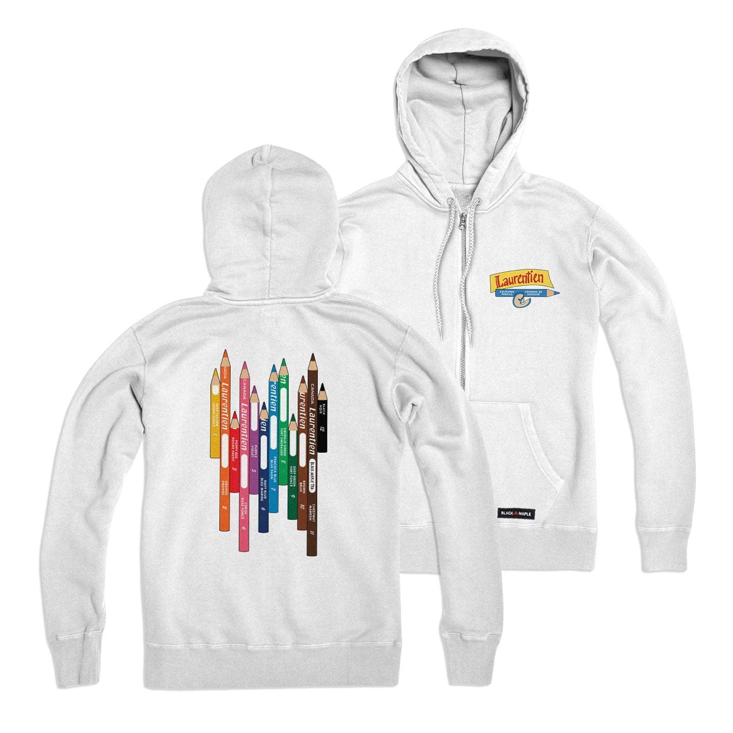 Celebrate a beloved piece of Canadian school nostalgia with this awesome Fleece Zip Hoodie featuring the original 12 colours of Laurentian pencil crayons and the defunct Laurentien logo.