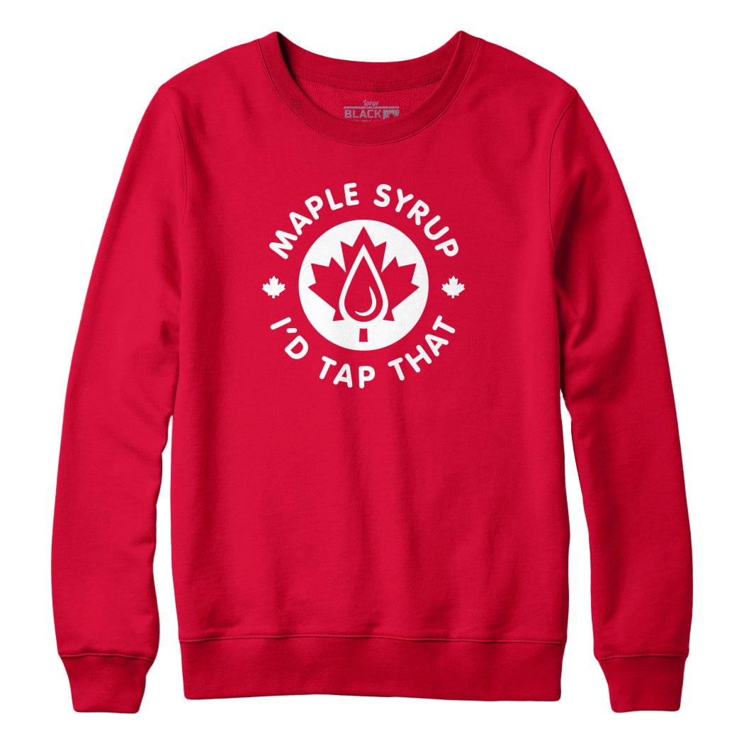 Show off your Canadian -ness by wearing these funny Maple Syrup I'd Tap That Sweatshirts.