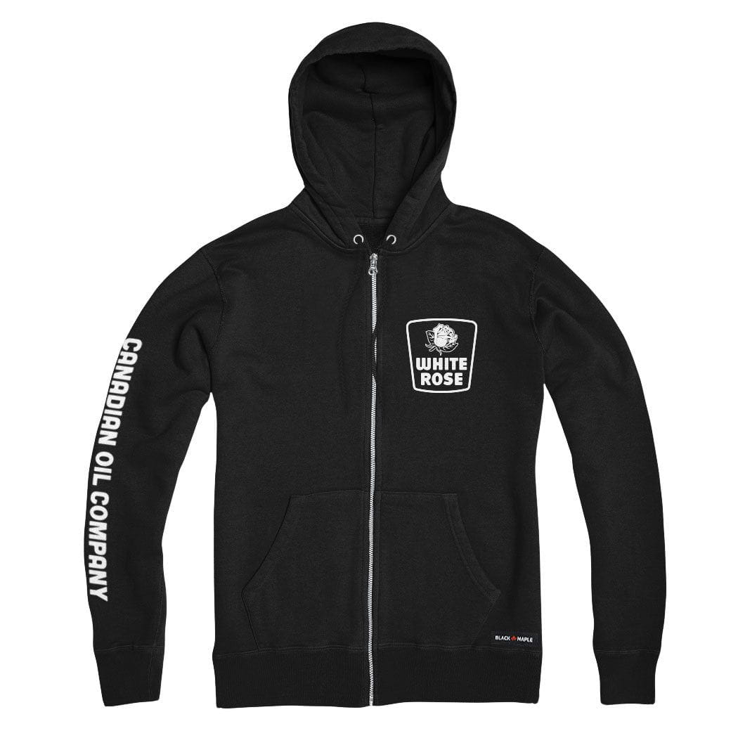 Elevate your casual wardrobe with our White Rose White Logo Zip Hoodie! This versatile piece features a small monochrome White Rose logo on the front left chest and a bold, large logo on the back, making it a stylish homage to the iconic Canadian oil brand. Crafted from soft, high-quality fabric, this zip hoodie combines comfort and practicality, perfect for layering on cool days or cozy evenings. Celebrate a piece of Canadian history while enjoying a modern look that’s ideal for any occasion.