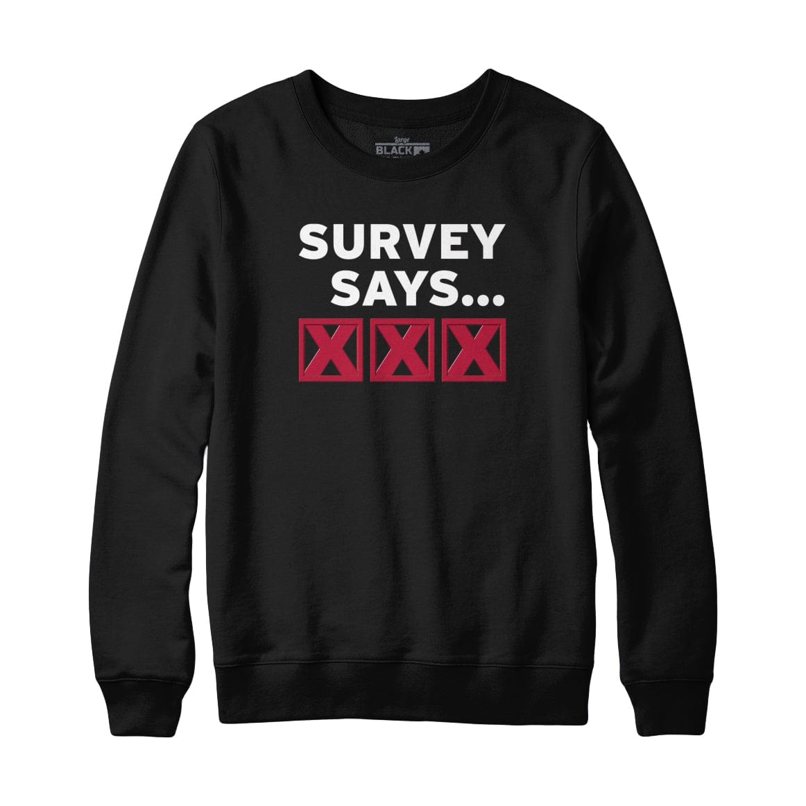 Relaxed and super comfortable, you'll love the way you look in this reliable classic Survey Says sweatshirt.