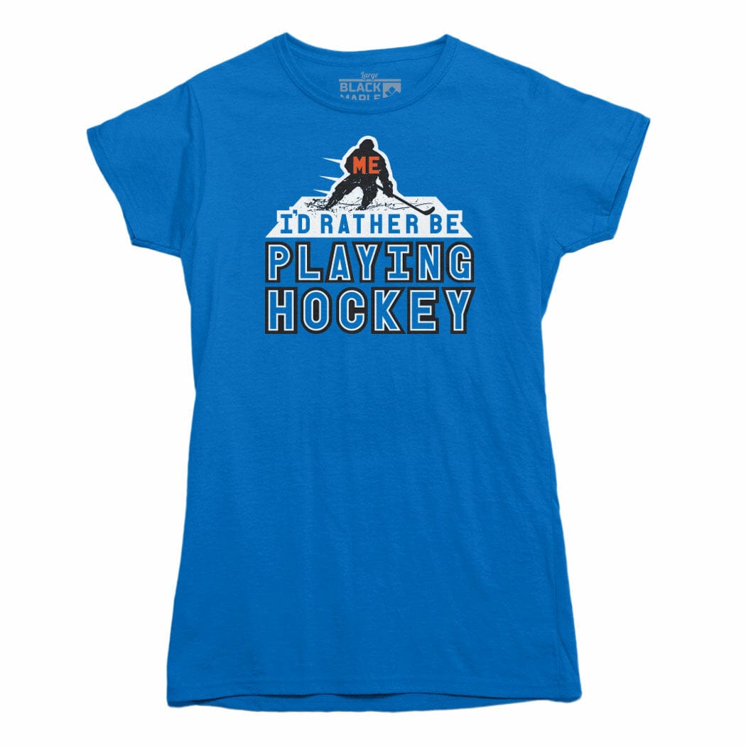 Day to day life can get boring. Does this describe you 24/7? This t-shirt is the perfect way to yell to the world, Me, I'd Rather Be Playing Hockey.