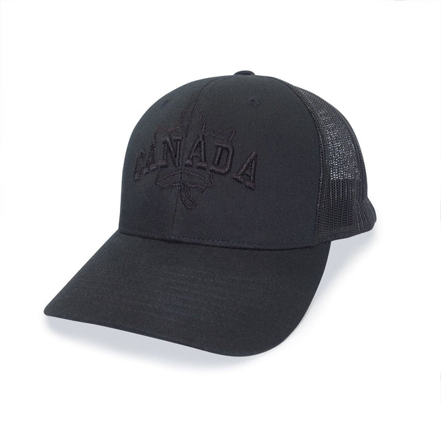 Introducing the Black Maple Trading/Tone on Tone Canada Puff Embroidered Trucker Hat! This is the perfect way to show your Canadian pride in style. Black on Black on Black for the ultra styling. The hat is expertly designed and embroidered with flat and 3D Puff stitching, making it a truly unique souvenir. It's the perfect way to stay cool and look cool at the same time. So don't hesitate, get your Canada Puff Embroidered Trucker Hat today!