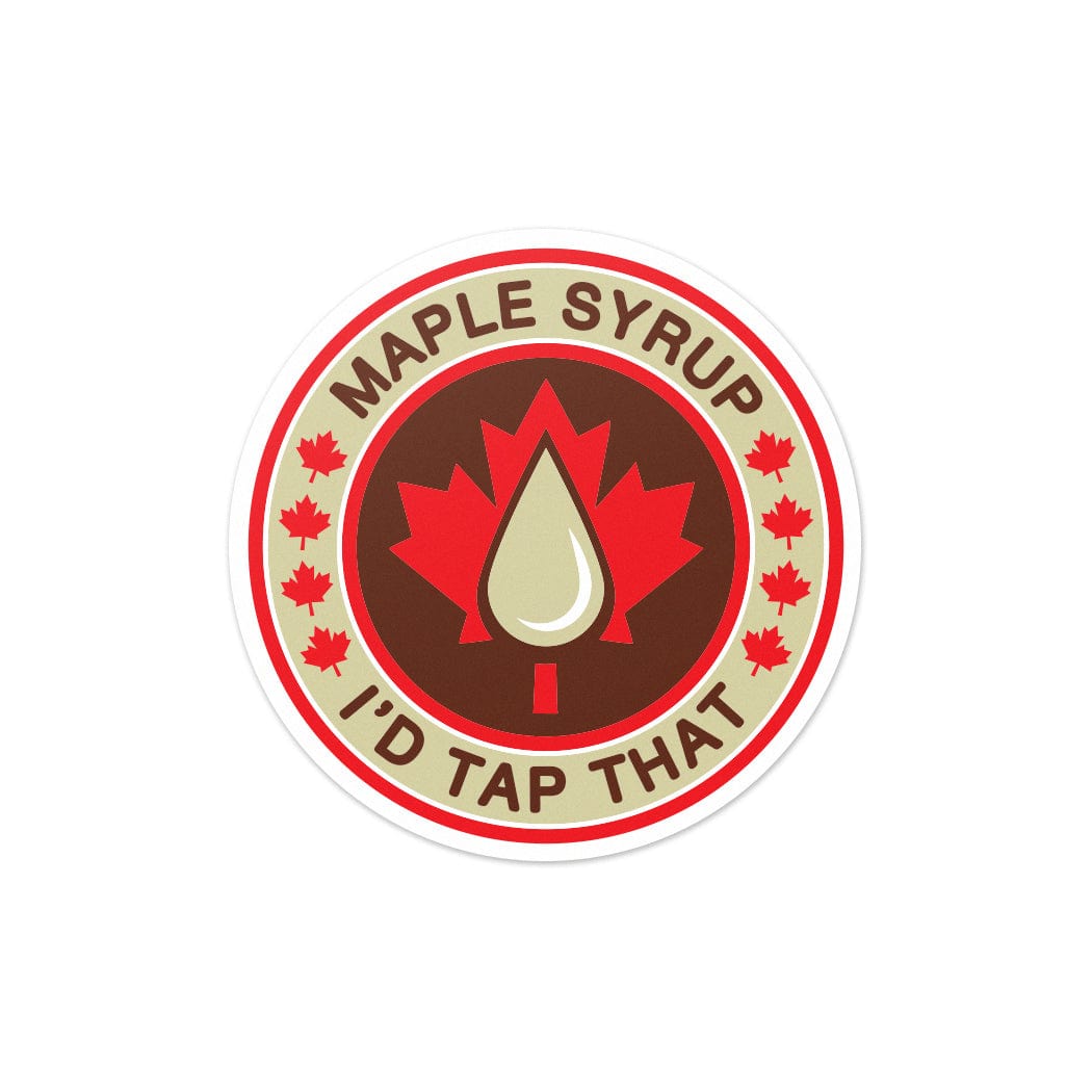 Make someone laugh with this funny Canadian themed Maple Syrup I'd Tap That vinyl sticker.
