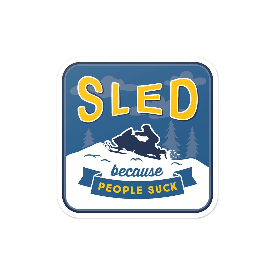 Are you looking for a fun way to express yourself? Well, look no further than the Sled Because People Suck Vinyl Sticker! This great sticker features a snowmobile design with the slogan "Sled Because People Suck" emblazoned on it, perfect for expressing how you really feel without having to say it out loud. And best of all, it comes in three sizes - 3 inch, 4.5 inch, and 6 inch - so you can choose which size is best for you. Whether you want to spread your message indoors or outdoors, this sticker is perfect for any occasion! So don't wait any longer and get your hands on the best expression of your feelings: The Sled Because People Suck Vinyl Sticker.