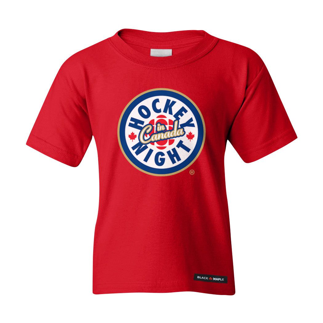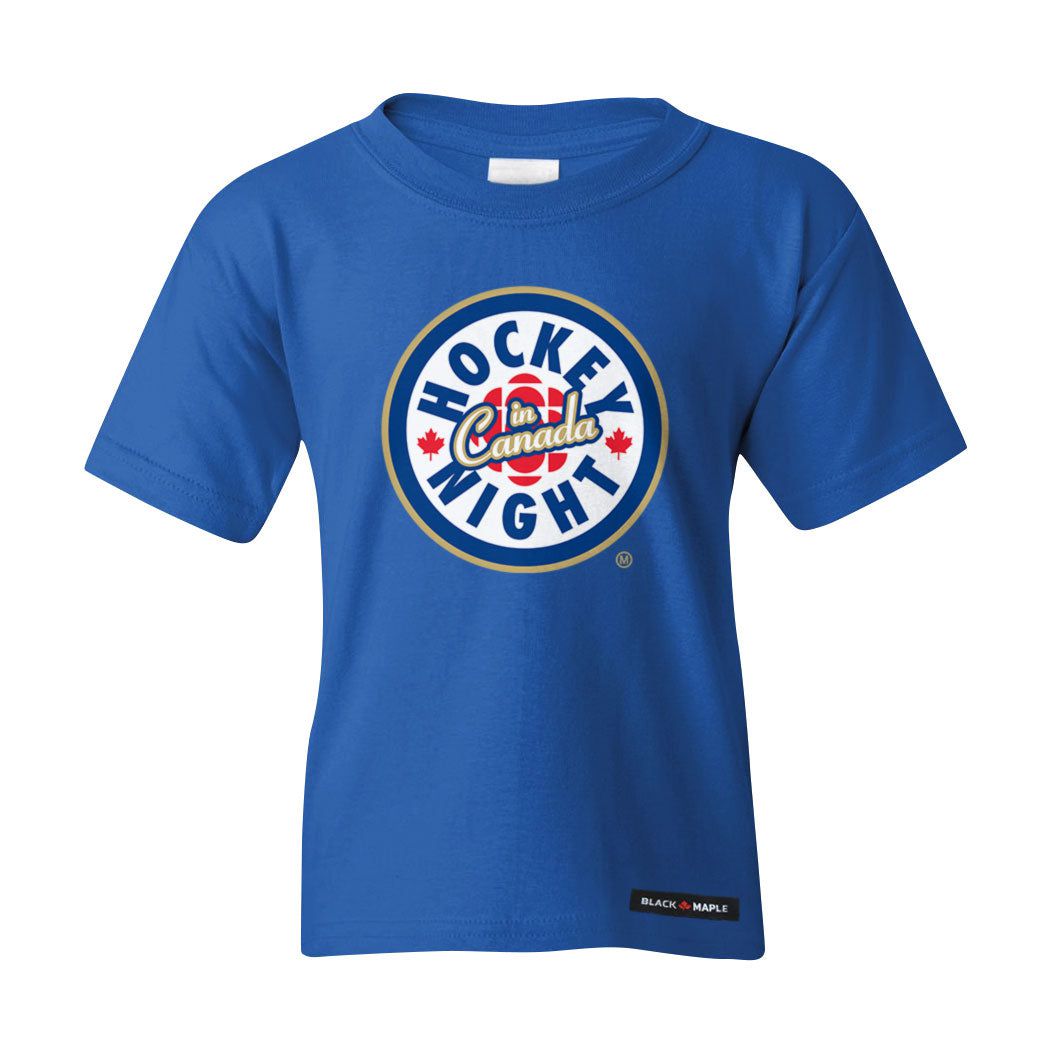 It's Saturday night and you know what that means - it's time for Hockey Night in Canada. Whether at home or out with friends, this a tradition that every Canadian grew up with. And now you can pass on this tradition with your favourite little hockey fan in this Kid's Hockey Night in Canada Tshirt.
