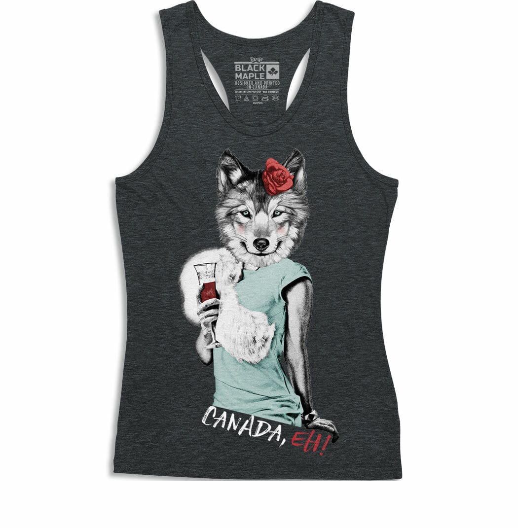 Lady Wolf with Wine Ladies Tank Top - charcoal heather