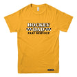 The unofficial uniform for dedicated hockey parents everywhere. This clever tee features the "HOCKEY DAD TAXI SERVICE" design with racing checkered stripes, perfectly capturing the reality of endless drives to practices, games, and tournaments.