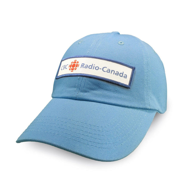 A comfy light blue dad cap with a special CBC Radio-Canada patch on the front